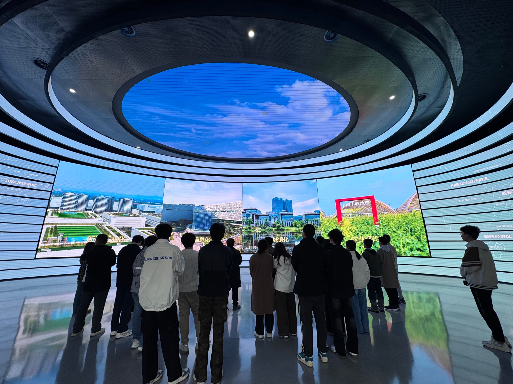 全景沙盘前驻足凝视,动态影像中追溯发展轨迹,同学们一步步读懂了成渝地区双城经济圈的建设密码。从一片空地到产业集聚、生态宜居的发展热土,新区的崛起历程鲜活呈现眼前,让协同发展的蓝图变得可触可感。