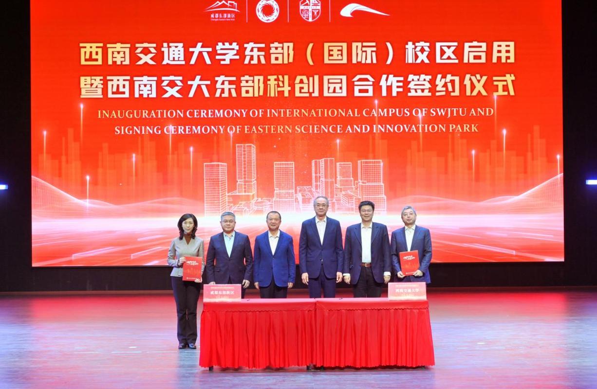 东部(国际)校区启用。他表示,西南交大扎根新区,注入了宝贵的人才资源与创新动能,标志着校地合作进入深度融合、协同共兴的新阶段。新区将全力做好服务保障,营造优良环境,让师生安心立业,围绕东部科创园,加快构建高校与企业常态化对接平台,支持联合研发与技术攻关,推动学校科研成果在新区落地转化。同时,将持续促进西南交大与区内其他高校的联动,在学科建设、人才培养等方面资源共享、优势互补,共同提升区域高等教育整体实力。相信在各方共同努力下,西南交大东部(国际)校区必将成为人才摇篮、创新高地和校地合作典范。